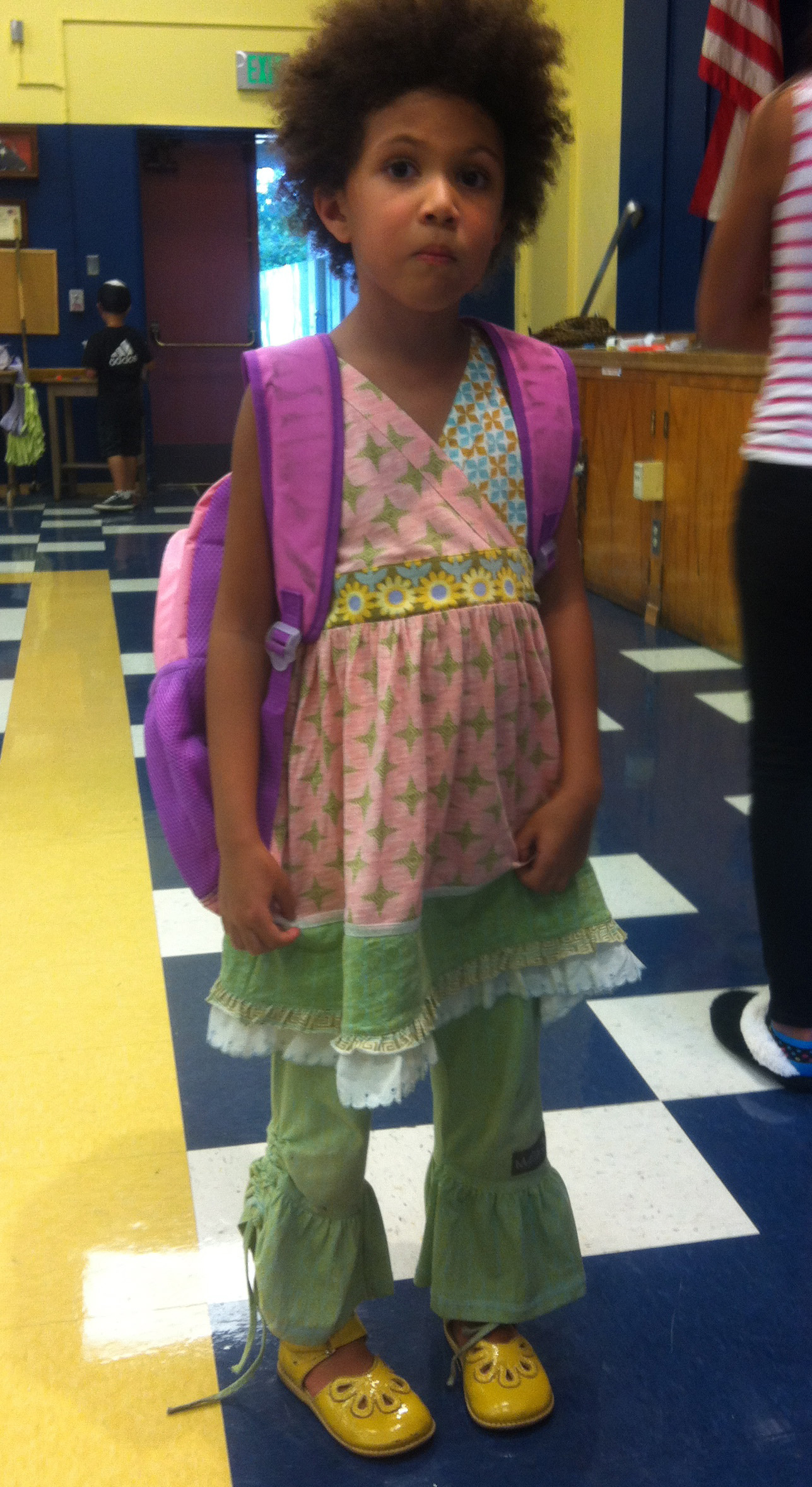Matilda Jane Joanna wrap dress and Lime Crush big ruffles from Serendipity collection. Livie and Luca yellow petal shoes.