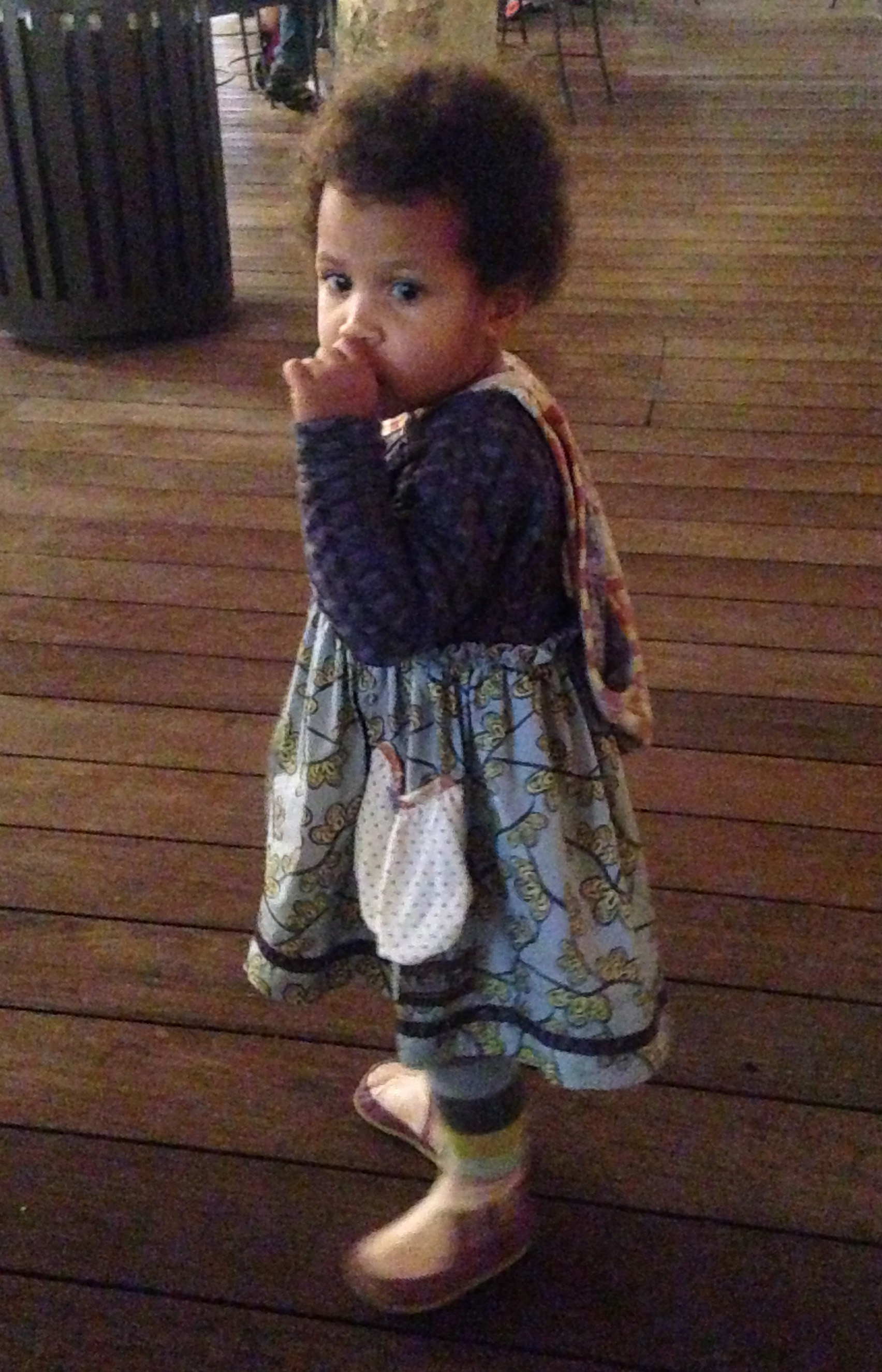 An evening outing in Matilda Jane. Ellie is wearing Monroe hooded dress with Reggie tights from Heart Soul Pride/Character Counts collection. This dress looks absolutely adorable, especially in smaller sizes, and the hood is so long, it’s almost touching the floor – love it! Livie and Luca Bay boots. Alice is wearing Matilda Jane Platinum Secret Garden dress over Ginger Brown tee from You & Me collection, Lemon tights from Serendipity collection, and Gap leg warmers. Our favorite PePe Prairie boots to finish her outfit.