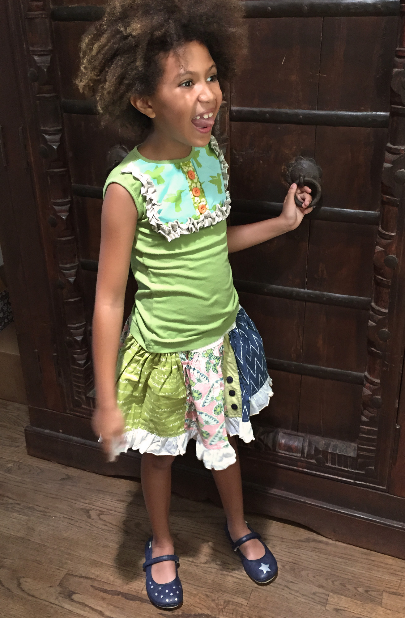 Persnickety Hummingbird Lou Lou top from Farmer’s Market (Spring 2013) collection, and Shirley panel skirt from Bo Peep (Spring 2014) collection. Shoes are Camper Star Ballet Flats in Navy.