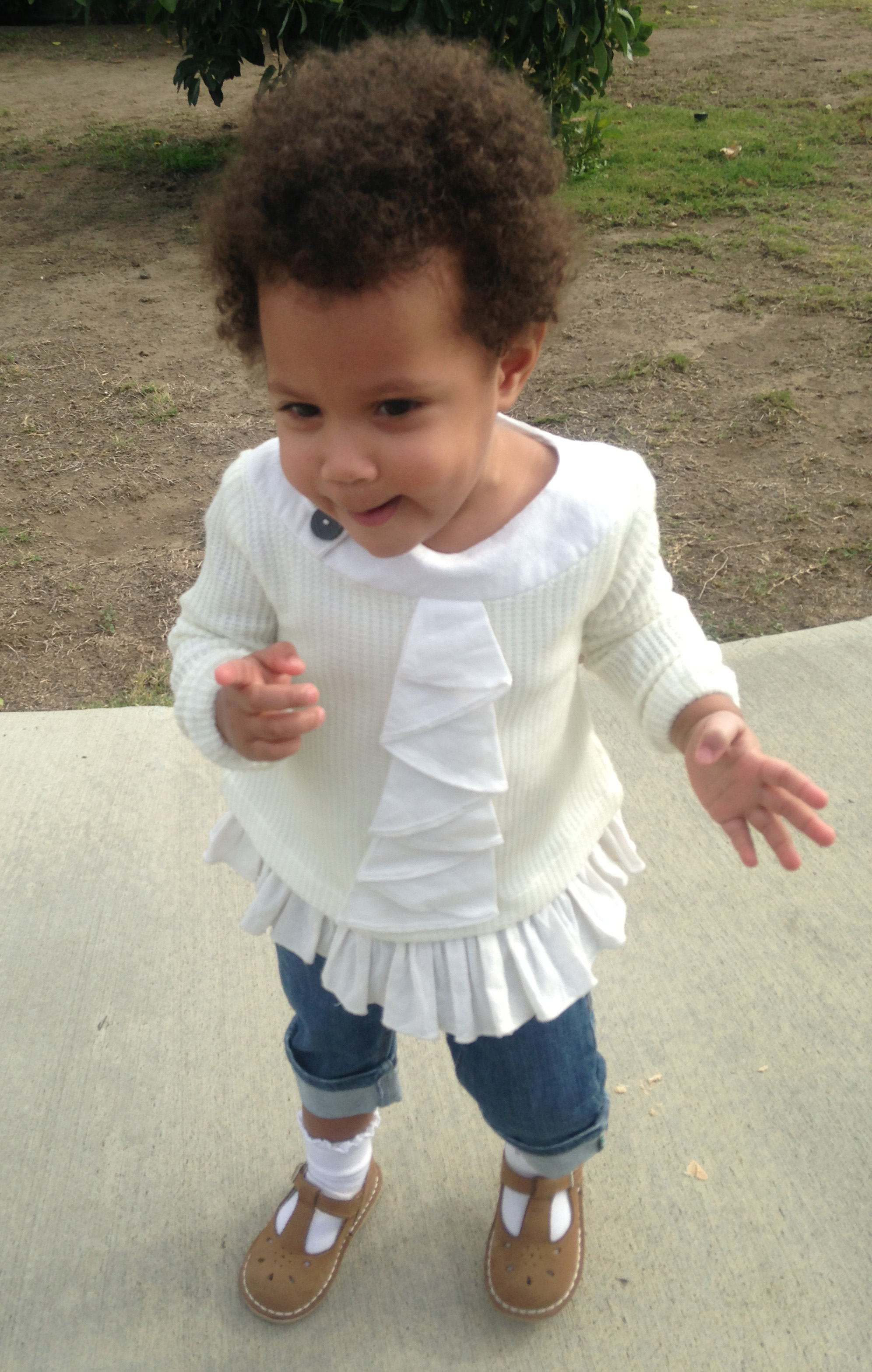 Alice dress is Adele A. by Blu Pony Vintage. Her headband is Persnickety’s Brownie Pie. Shoes are PePe. Ellie is wearing Blu Pony Vintage Ida C. top in washed denim and Persnickety Gaucho pants in gray. Her shoes are L’Amour T-Strap Mary Janes. I love how Ellie’s top closes on the back, and how Alice’s dress drapes when she sits down.