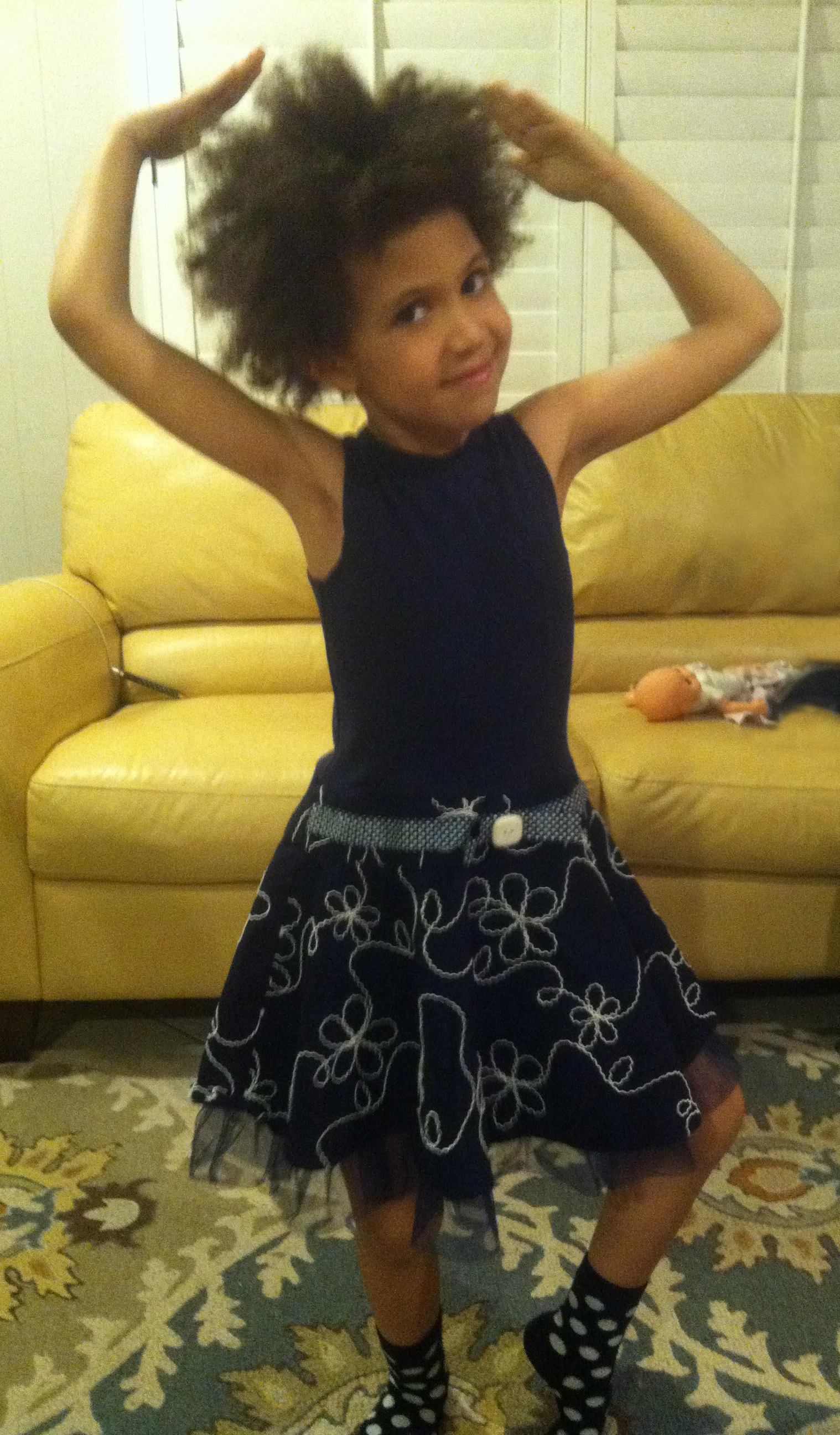 Alice is posing in her Rare Editions dress. This ‘ballerina’ type of dresses with a stretchy tank top and a full twirly skirt looks so good on her. And who doesn’t love twirly! I really like the sash/bow detail that is dropped below the waist seam, with the embroidery of the skirt peeking above it.