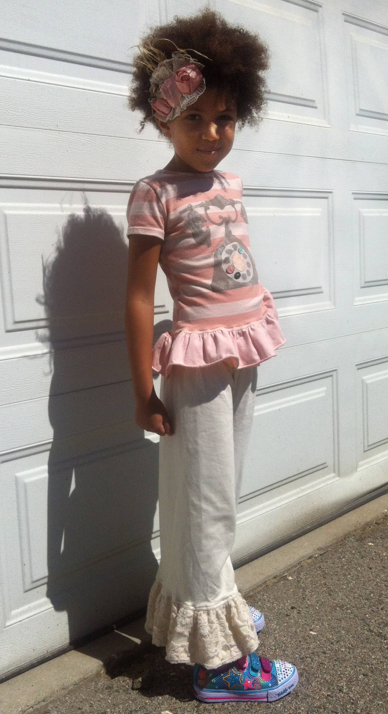 Alice was asked to be a flower girl in a wedding. The dress is by Cinderella brand that I got from Marshalls. I love all the ribbon weaving and pearls on bodice and hem of the dress. Headband is Sarah Jane by Persnickety and shoes are Joyfolie Ellie in lace.